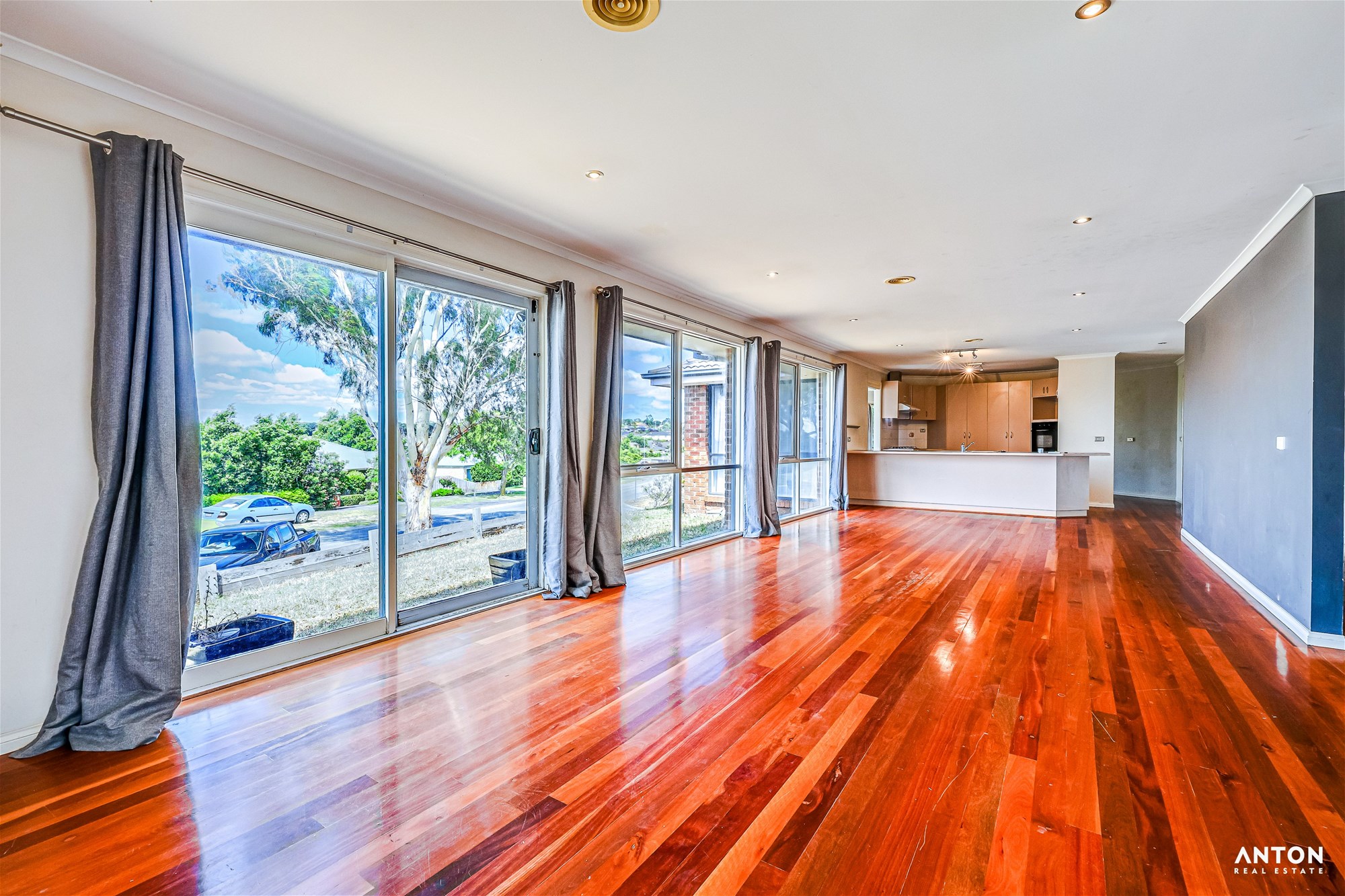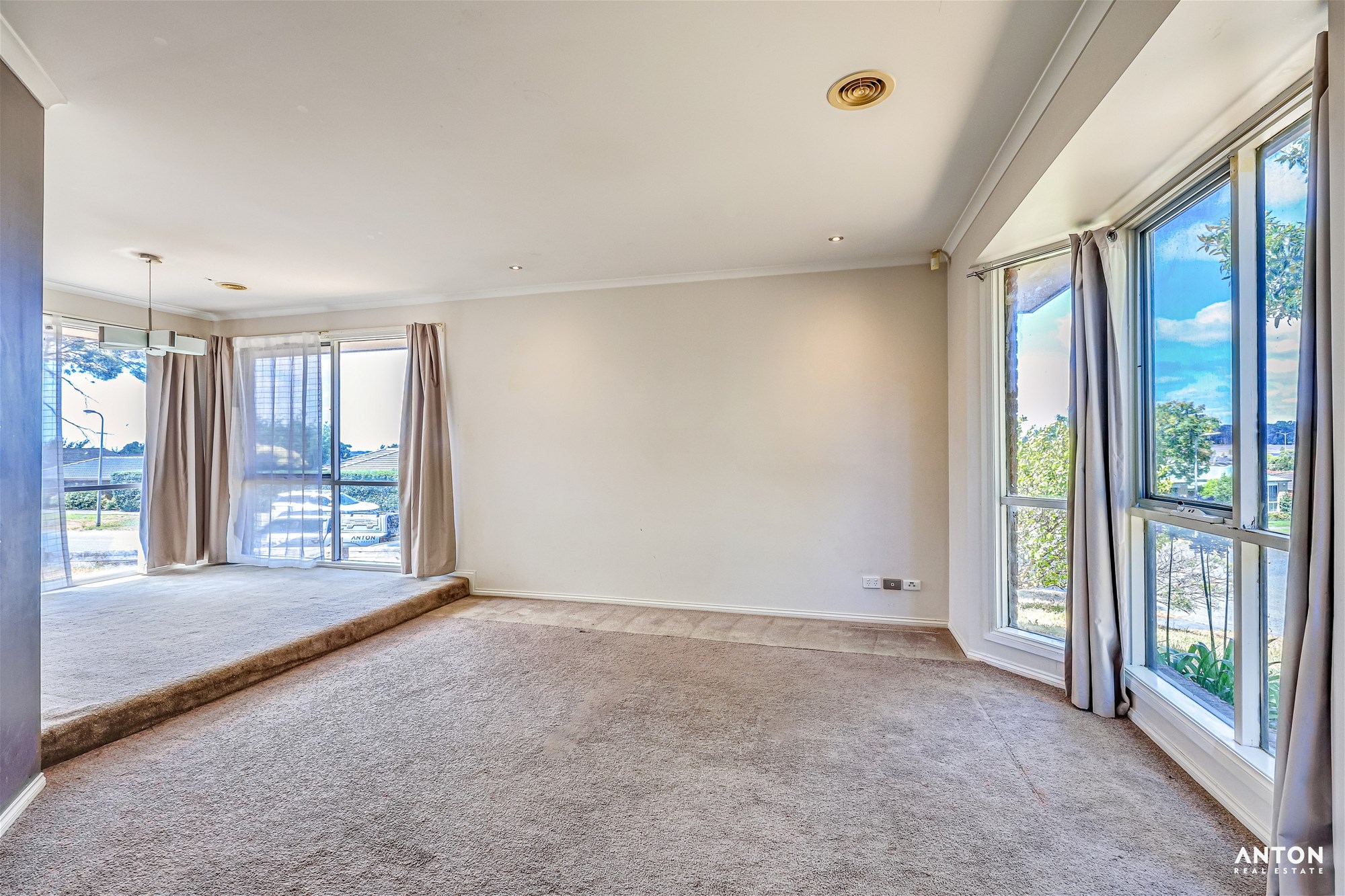 Spacious open-plan living and dining area filled with natural light