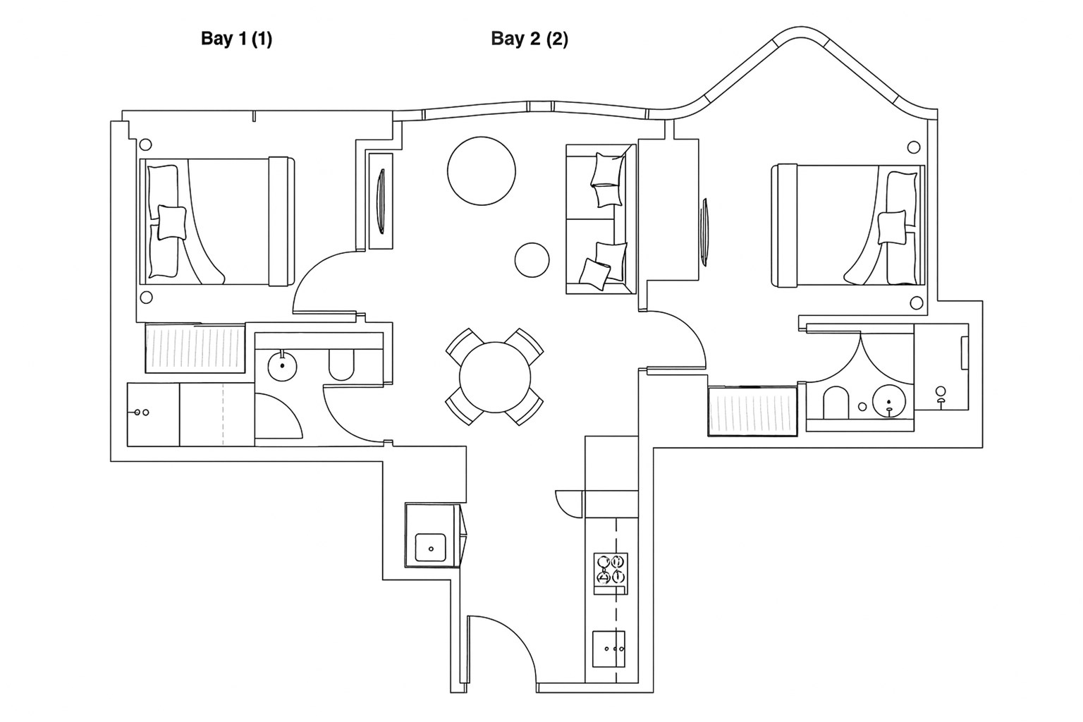 2 spacious bedrooms & 2 modern bathrooms