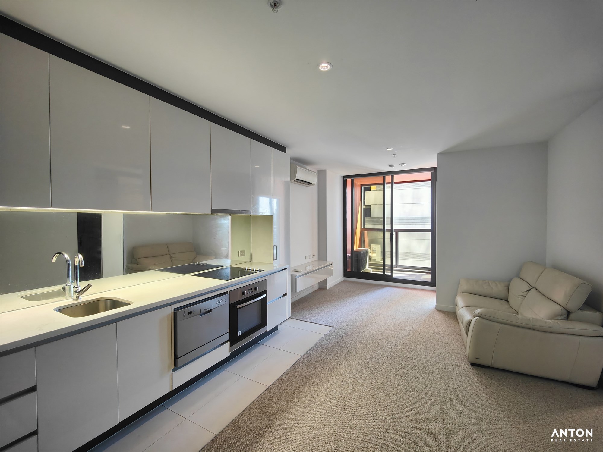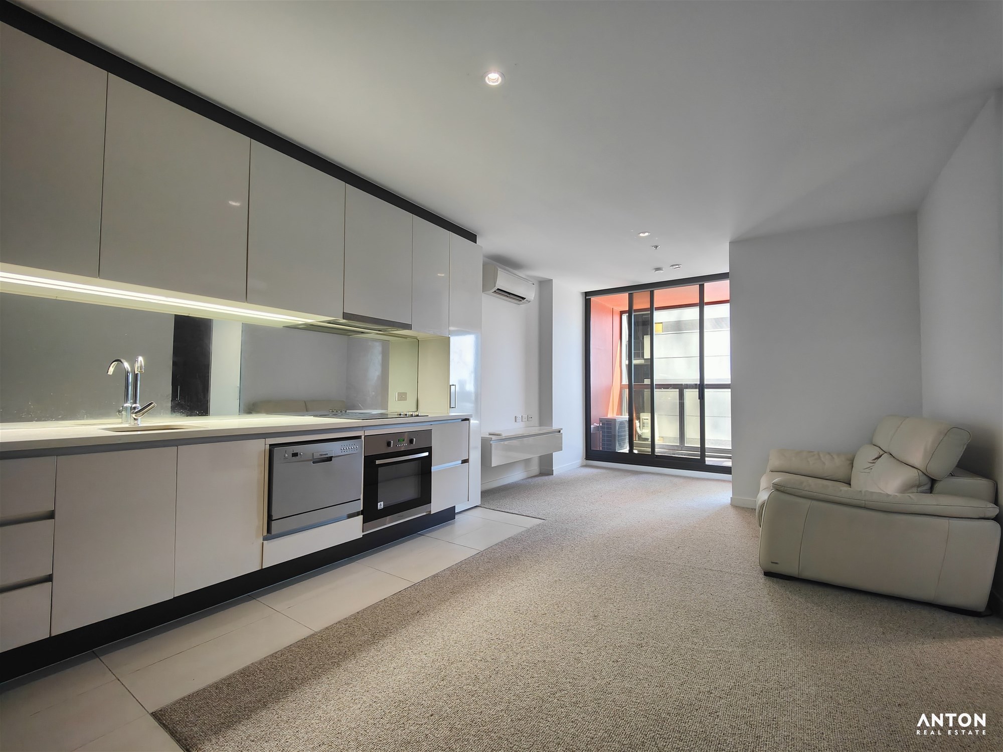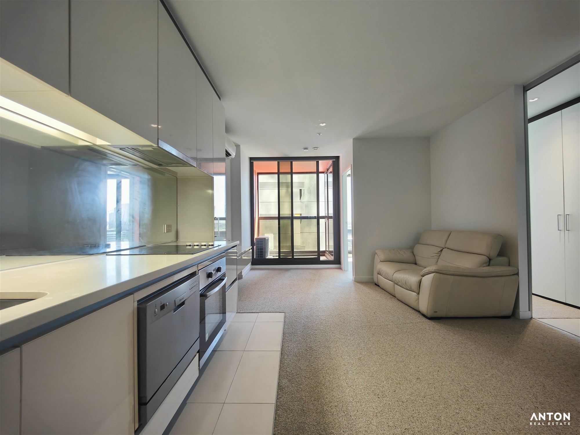 The bedroom is generously sized with built-in wardrobes and comes with a bed included. The living area is equipped with a sofa only, allowing tenants the flexibility to furnish the rest of the apartment to their own taste. No other furniture is provided.