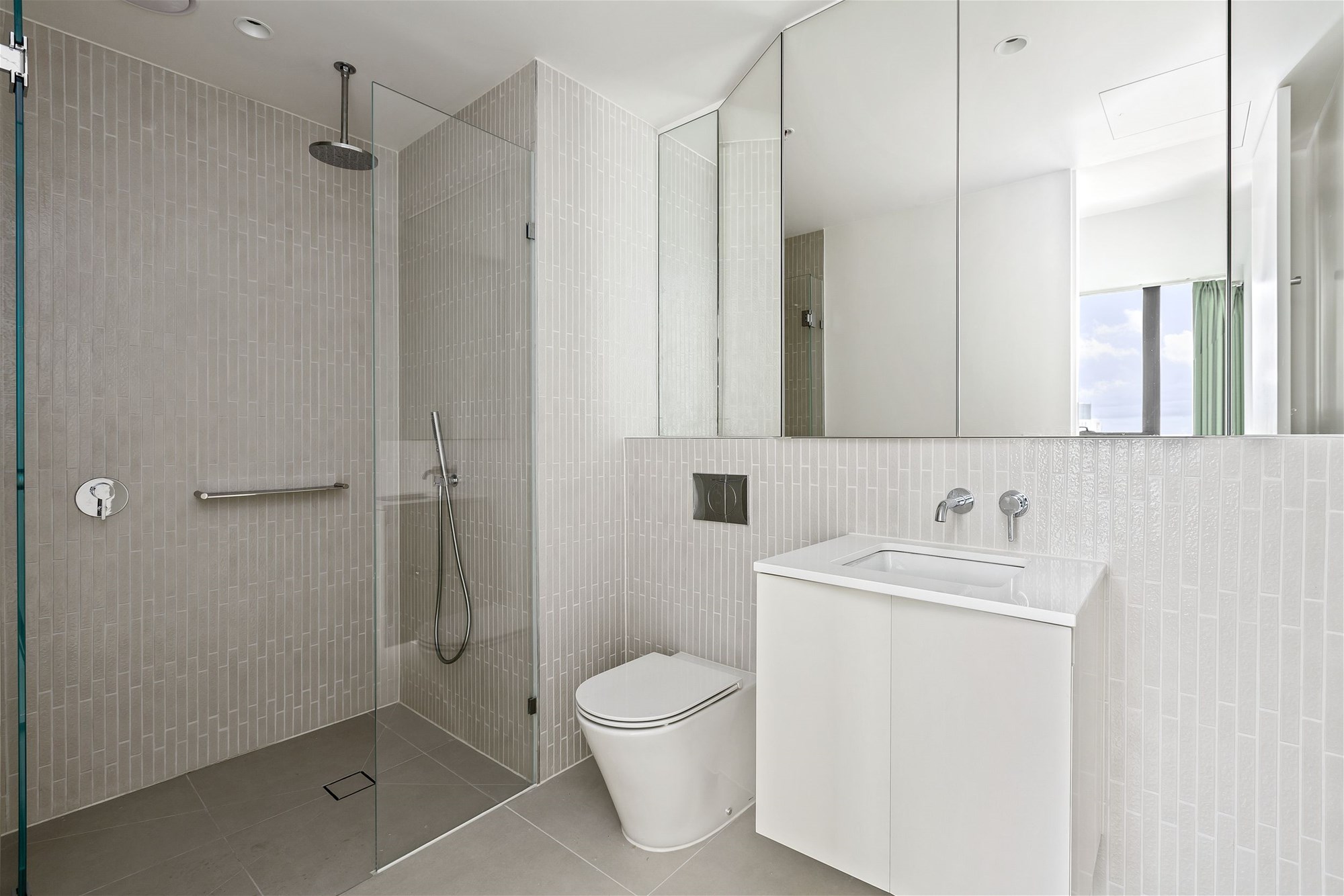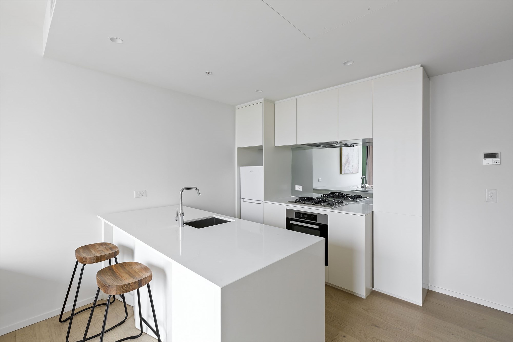• Integrated fridge cavity and modern mirror splashback